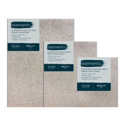 The Elements Deep Canvas Range is designed for artists seeking a high-quality, durable surface for their creative work. Made from 100% medium grain cotton, these canvases are stretched over solid pine bars for strength and stability. Each canvas is triple-primed with white gesso, creating an acid-free surface that enhances paint adhesion while preserving the artwork’s integrity over time.