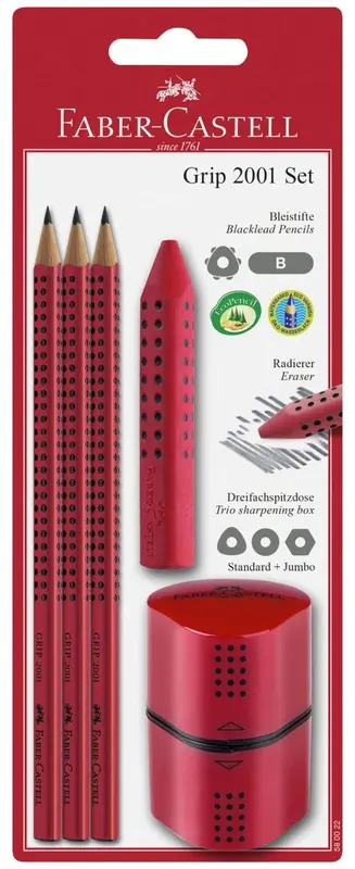 Short, long, round, square, smooth, with integrated sharpener and eraser - there is no end to the attractive innovations of this set. The only one pencil of its kind anywhere in the world: Grip 2001. The patented Grip zone prevents fingers from slipping. The ergonomic triangular shape ensures fatigue-free writing. The surface coating is made from environmentally-friendly water-based paint, a technology first introduced by Faber-Castell. The lead is fully bonded with the wood surround, making it particularly break-resistant.