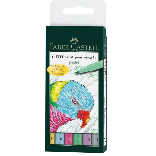 Faber Castell Pitt Artist Brushpens. Ink drawings have a very long artistic tradition. This has always been an interesting medium for artists and graphic artists, it lends drawings expression and durability and can also be combined with many other drawing techniques. Faber-Castell has combined all the advantages of artist's inks with the benefits of a modern, easy-to-use pen - the Pitt Artist Pen. The pigmented and very lightfast drawing ink is ideal for sketches, drawings, layouts, fashion design and illustration.
