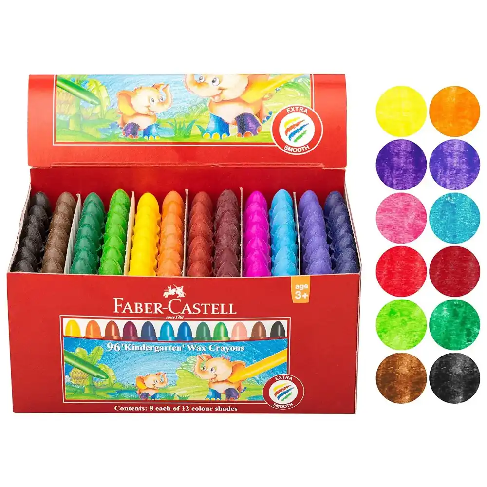 Faber Castell First Grip Crayon - 4 Assorted. Budding artists between the age of 3 and 6 love to experiment by drawing on different surfaces. Crayons are a great way of drawing on large surfaces, with their soft stroke and bright colours.