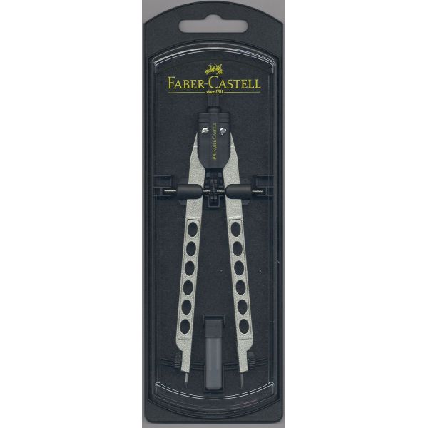 This Faber 2 Part Compass is a precise drawing instrument designed for creating accurate circles and arcs, featuring a durable metal construction, adjustable arms, and a secure locking mechanism for stable measurements.
