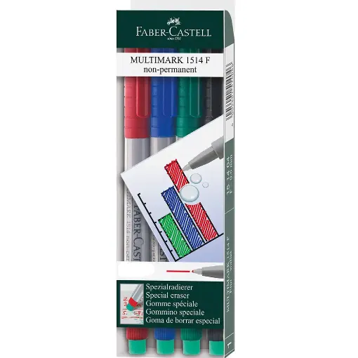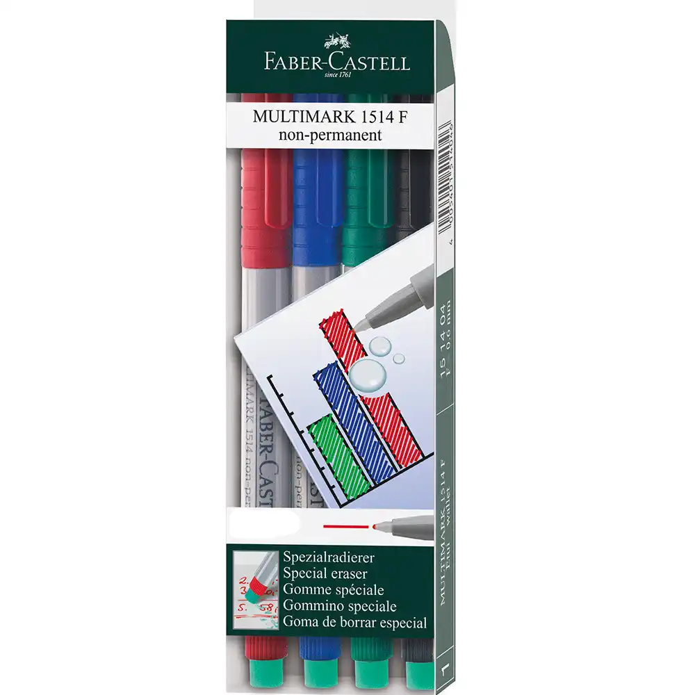 Faber Castell Multimark Non-Permanent Markers Superfine 4 Pack