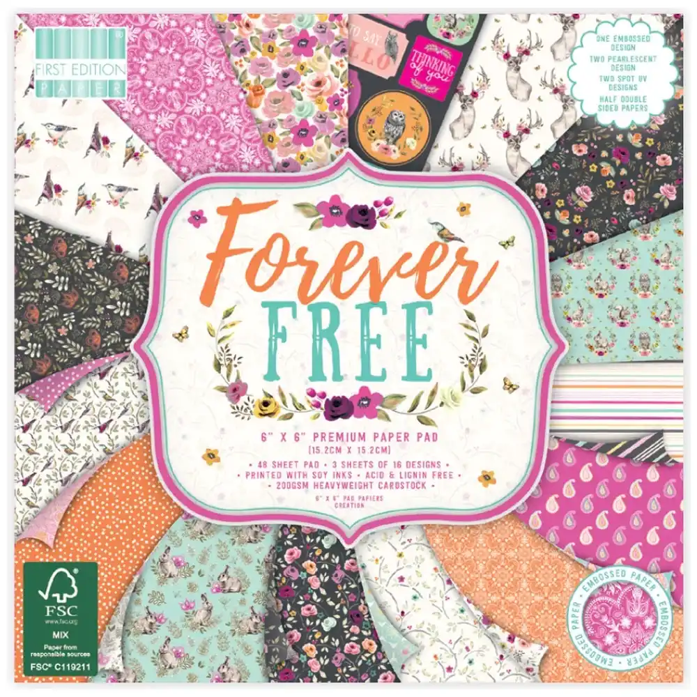 Step into an enchanting world of delicate florals and stylish bohemian prints with the First Edition Forever Free Paper Pad! Designed in a contemporary pink, orange, and blue colour palette, the premium 200g pages are adorned with dreamy illustrations of majestic stags, beautiful birds, and adorable rabbits, capturing a magical snapshot of woodland life. These papers also feature 2 pearlescent designs and 3 with UV effects to make your handcrafted projects extra special - and half the papers are double sided, making them perfect for 3D papercrafts.
