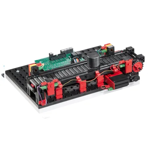 The Conveyor Belt 24V is a realistic training model designed to simulate industrial transport systems. Featuring a transport belt with a length of 275 mm, it efficiently moves workpieces with diameters of up to 29 mm. This model can be seamlessly combined with other training systems, such as the "3-axis robot with gripper," to enhance automation workflows and training scenarios.