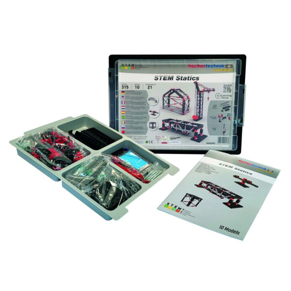 Unlock the fascinating world of construction and data analysis with the fischertechnik Class Set Smart Physics. This comprehensive set offers an engaging and hands-on learning experience, perfectly suited for regular classroom lessons. With ten dynamic models, students can perform a wide range of physics experiments, exploring concepts from accelerated motion and harmonic oscillations to sound wave propagation and spectrum analysis. Integrated smartphones capture experimental data, which is then analysed in real-time using the Phyphox app, providing immediate, detailed insights. By blending theoretical knowledge with practical application, students develop a deep understanding of physical laws while enhancing their problem-solving and analytical skills. Accompanied by specially designed teaching materials, this set is ready for direct implementation in the classroom, making complex physics concepts accessible and exciting for all learners.