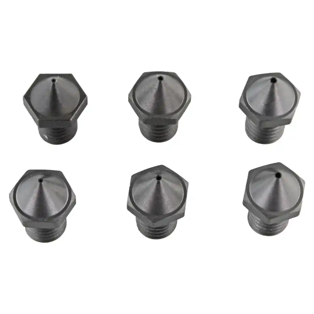Hardened nozzle set for Creator 3 & Creator 4 printers. Includes: 2x 0.4mm , 2x 0.6mm & 2x 0.8mm hardened nozzles.