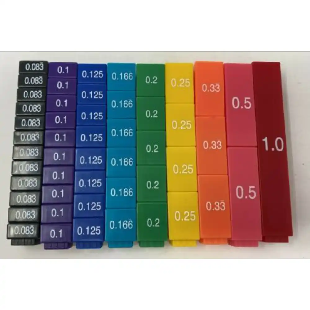 Provide a concrete representation of abstract math concepts with these plastic rods in a variety of color-coded lengths (in 1cm increments from 1cm to 10cm)