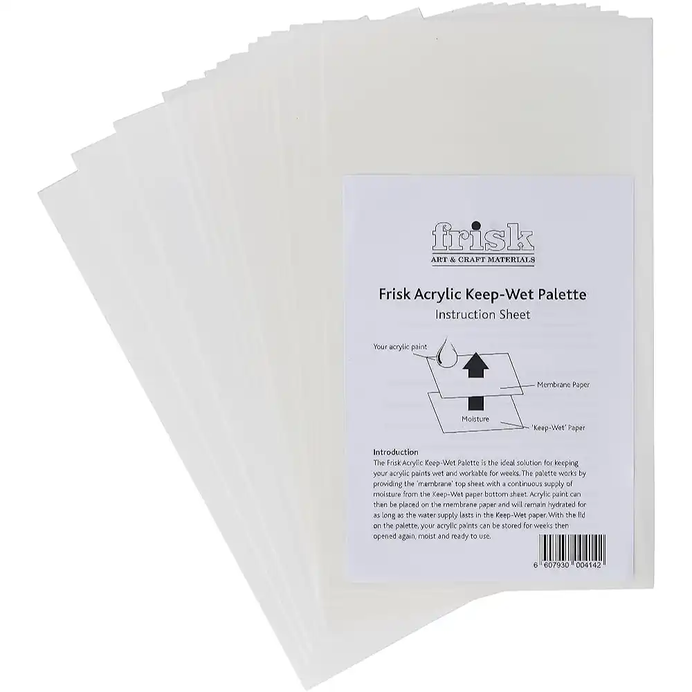 The Frisk Acrylic Keep Wet Palette Refill Pack is the perfect companion to ensure continued functionality of your Keep Wet Palette. With 50 high-quality, tear-resistant sheets, this pack provides a generous supply of palette refills, allowing you to replace used sheets and maintain optimal paint freshness. Designed specifically for the Frisk Acrylic Keep Wet Palette, this refill pack is a cost-effective solution for artists who value long-lasting paint preservation.
