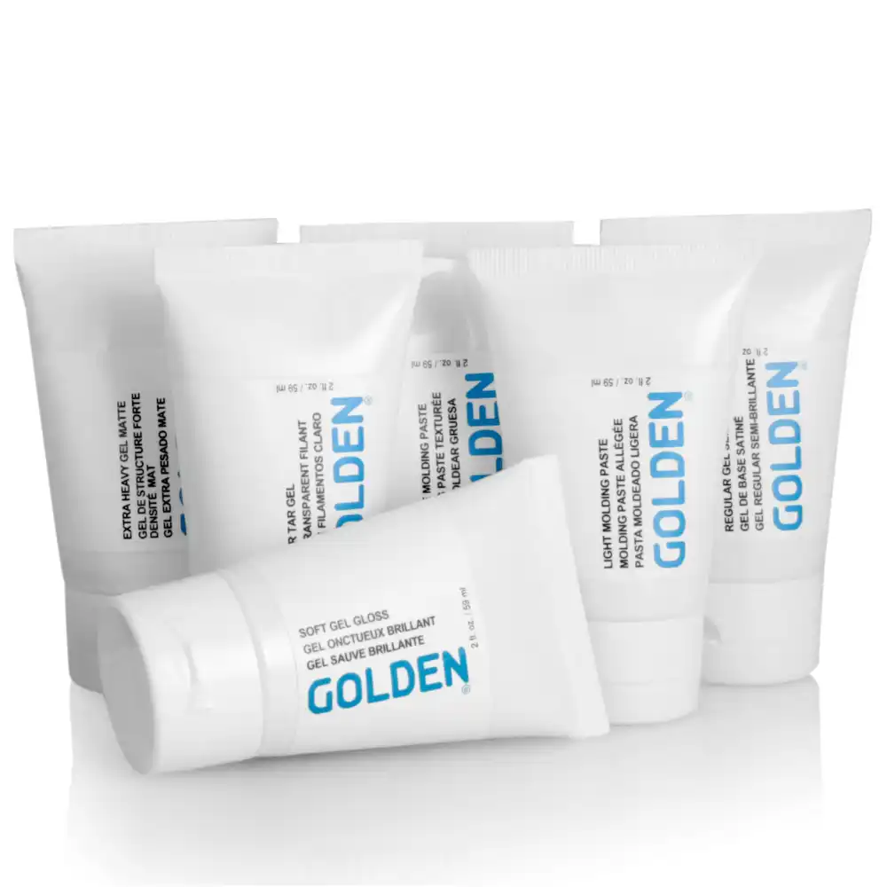The Golden Acrylic Textures Set has been completely reimagined with squeeze tubes to make the six mediums easier for artists to use and increasing the shelf-life of the products inside an HDPE box made with 70% post-consumer recycled plastic. This set is a great introduction to Golden’s offering of Gels and Pastes, allowing artists to explore adding texture to their work.