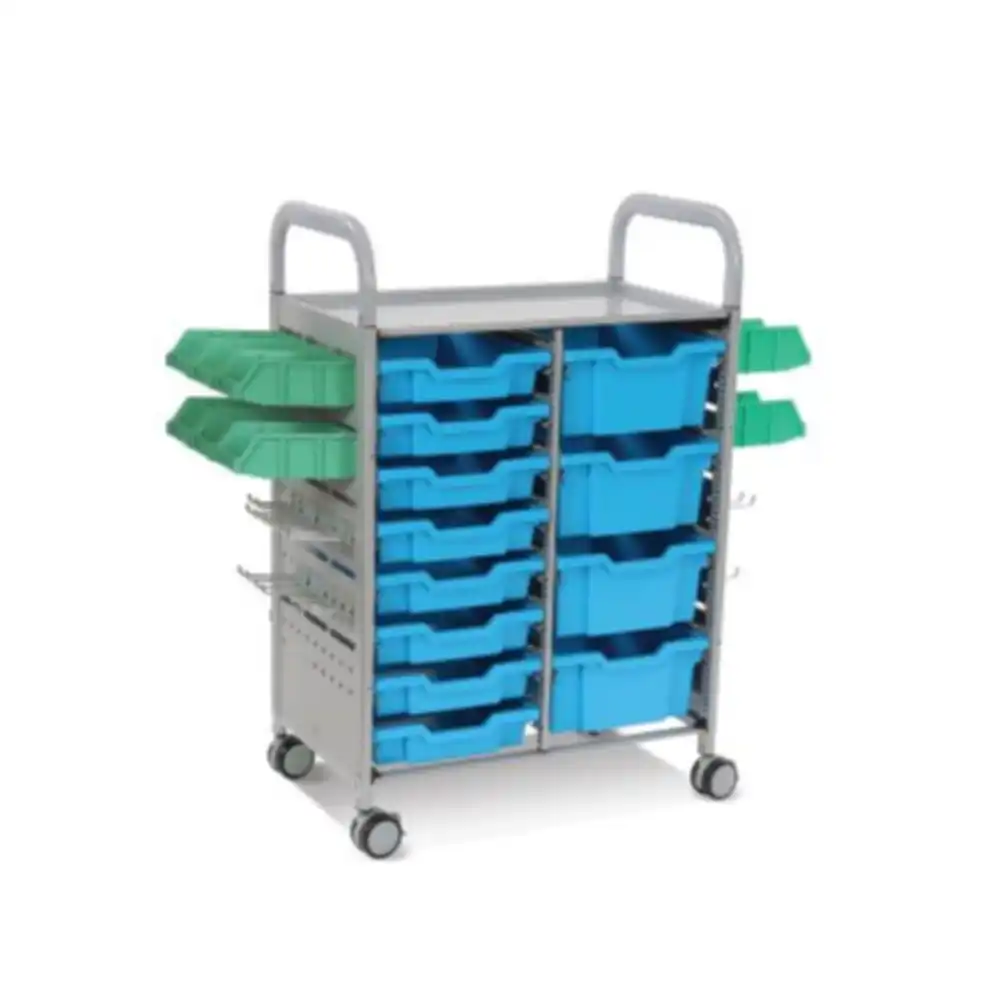 The MakerHub Trolley is double-sided making it ideal for group activities. A variety of Gratnells trays can be used in the MakerHub thanks to the flexible runner system in the base storage unit. The trolley can be secured in place with the two lockable castors.
