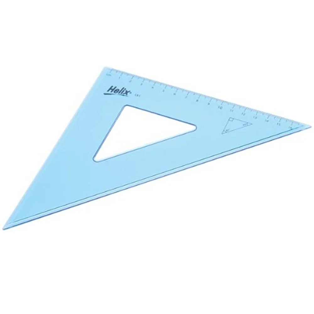 The set square is made of durable, transparent plastic and features a raised edge for easy gripping and precise placement. It is an essential tool for anyone who needs to make precise measurements and drawings in their work or studies.