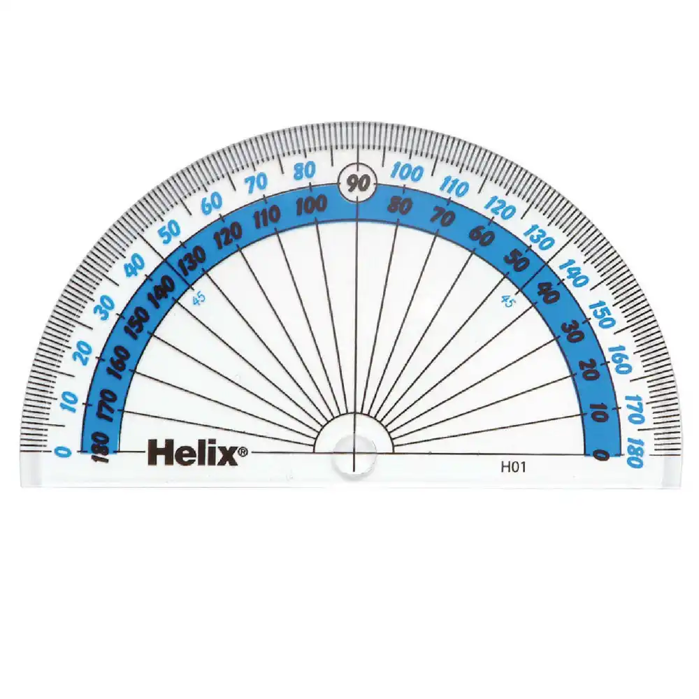 Set squares are matched 45° hypotenuse to 60° upright. Each set square has engraved metric scale.