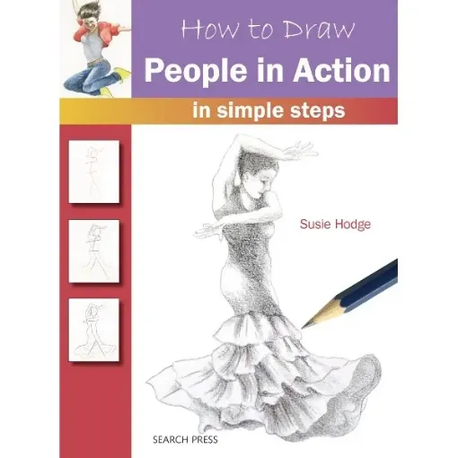 How To Draw People in Action This book features a range of subjects including runners walkers swimmers and dancers in various dynamic poses such as bending jumping skipping and playing sport. There are 28 pages of two-colour step-by-step line drawings plus a finished image in full colour. There is one subject per page and the sequences are not overly complex. The method of illustration is simple: basic geometric shapes evolve stage by stage into the finished forms. In order to make the sequences easier to follow the artists use different coloured pencils for each of the stages. The colours act as a guide with new shapes built on old shapes and distinguishing features are added as the images develop. The penultimate stages show tonal representations of the subject and the final stage is a full-colour image of the finished drawing. The drawings are designed to inspire and will act as a starting point to help the reader capture their unique creative flair. Author: Susie Hodge
