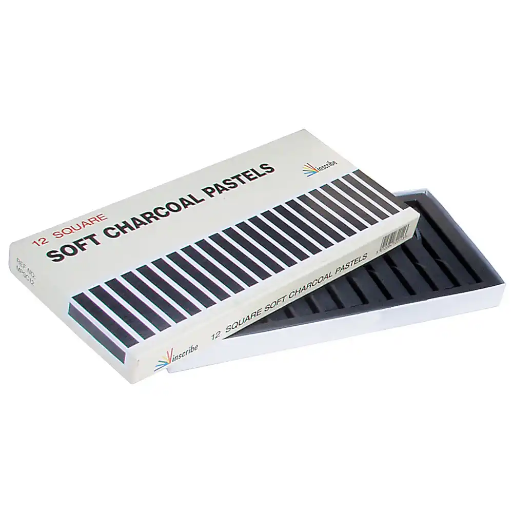 A set of 12 Inscribe square soft charcoal pastels which are easy to apply and produce a variety of tones and shades. Use the square edges for fine lines and detail and the side of the charcoal for covering larger areas.