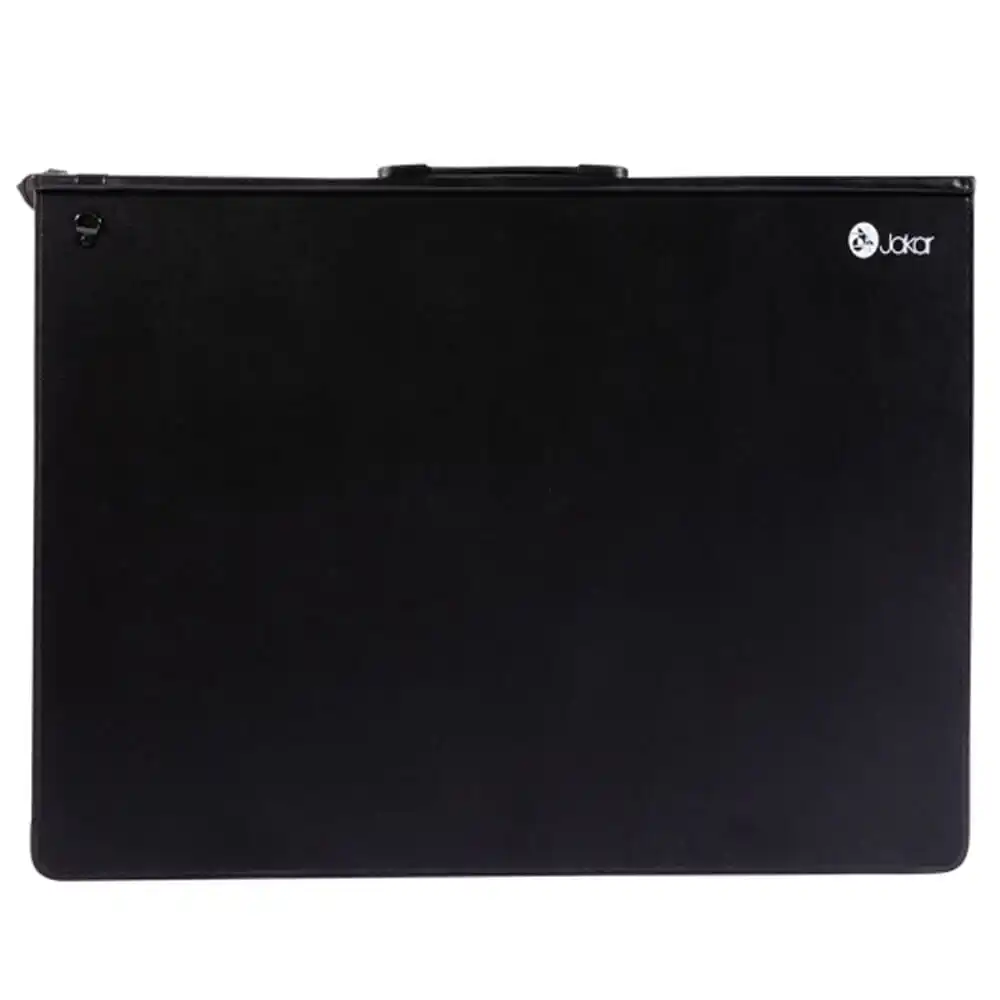 This Jakar A1 Black Ring Binder Portfolio Case will keep artwork or plans secure, organised and free from damage. Featuring a rigid, PVC water resistant cover, contents can be sure to remain in-tact and easily retrieved from the strong and durable, zinc alloy spring ring binder mechanism. The extending handle is both ergonomic and stylish, and the clip-on shoulder strap is included for when hands-free carrying is required.