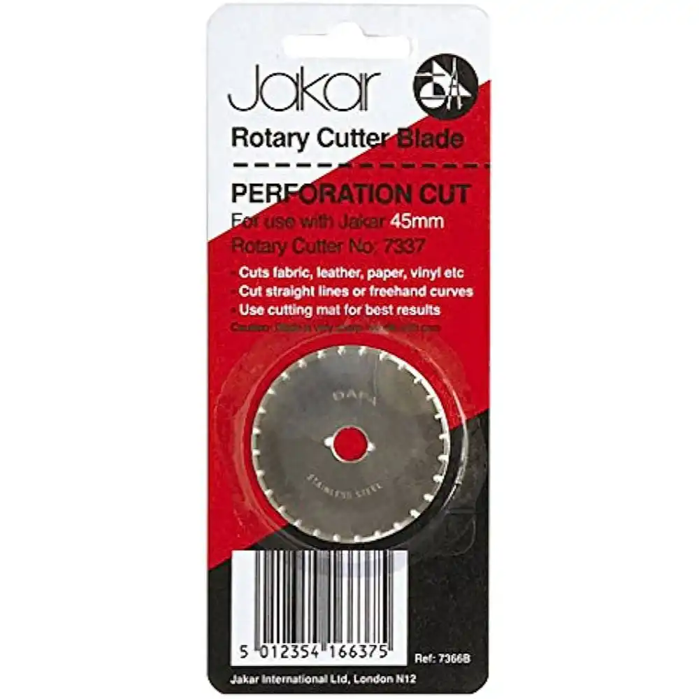 The Jakar Rotary Cutter Blade with a 45mm perforation cut is a versatile tool for adding decorative perforated edges to your projects. With its precise perforation cut, it allows for easy tearing or separation along the dotted line. Whether you're working on paper crafts, sewing projects, or other creative endeavors, this rotary cutter blade offers a quick and efficient way to achieve unique and professional-looking perforated designs.