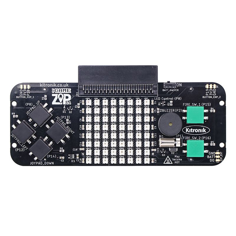 The :GAME Controller is similar in design and features to the the :GAME ZIP 64, only without the ZIP LED screen. This offers great value if the micro:bits own LED matrix is sufficient for the game or when it will be used to control other devices such as robots and buggies. It will also be much lighter on power consumption than its larger/older sibling.