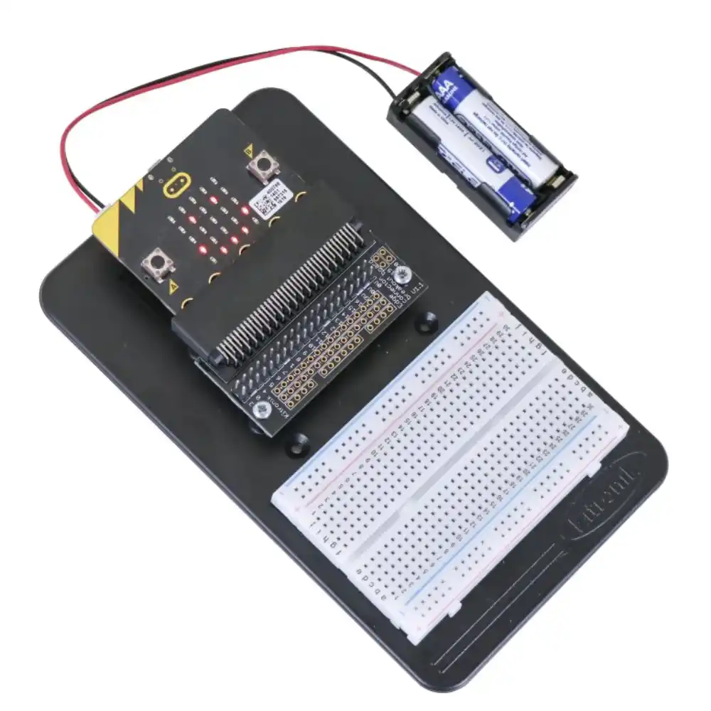 This Prototyping System for the BBC micro:bit is a great way to start making circuits and making experiments without the need to solder.