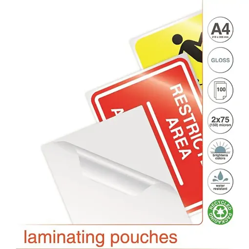 The A4 size is perfect for standard letter-sized documents and makes it easy to laminate important papers such as certificates, diplomas, and ID cards. Laminating Pouches are boxed in 100's.