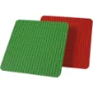Two sizable building plates, one in red and the other in green, set the ideal stage for playful learning. Compatible with all LEGO® DUPLO® related items. Dimensions: 38 x 38 cm.