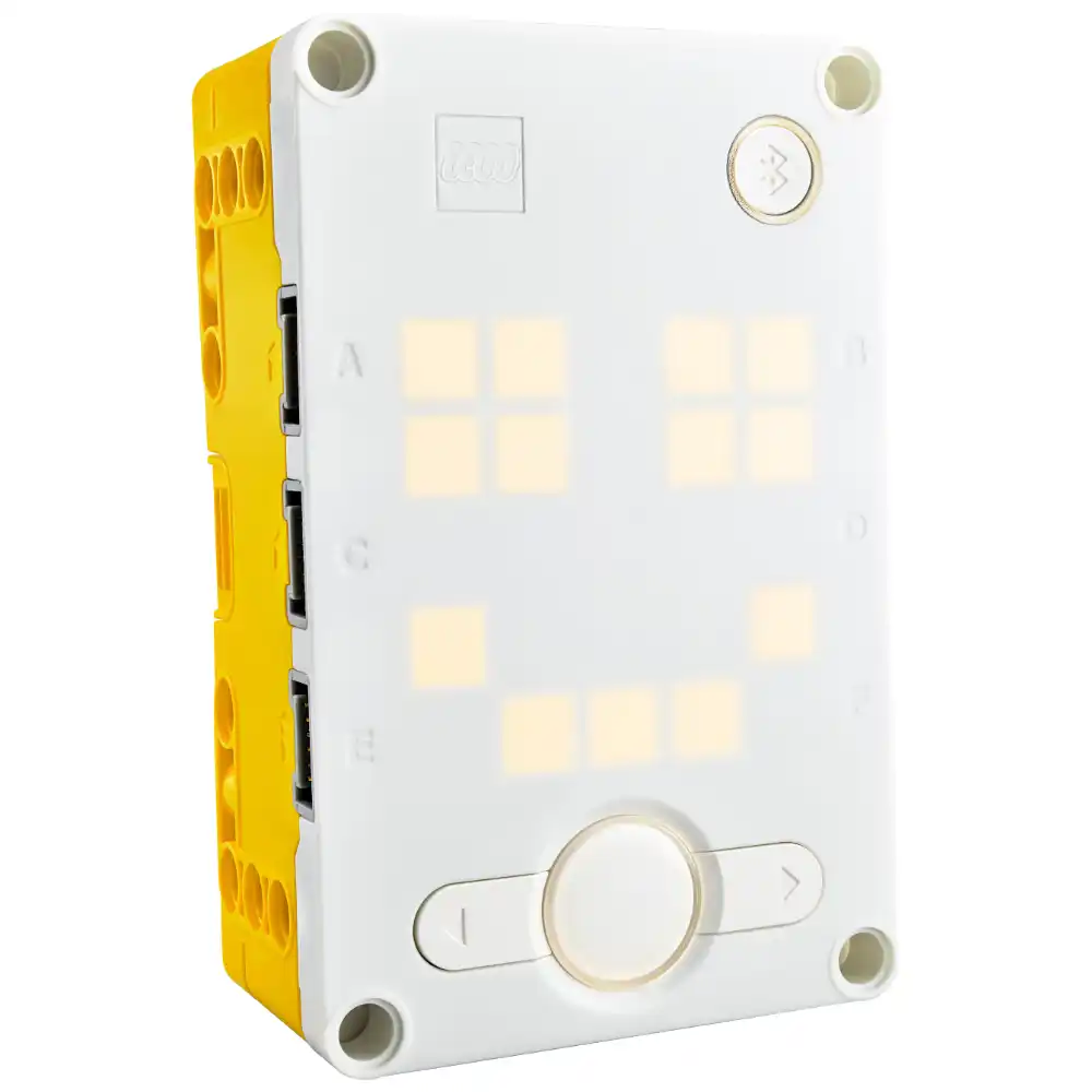 The LEGO® Technic™ Large Hub is a sophisticated brick-styled gadget, effortless to operate, with 6 versatile ports for linking multiple sensors and motors. It boasts a customizable 5x5 light grid, Bluetooth compatibility, an in-built speaker, a 6-axis gyro, and a rechargeable lithium-ion battery. Plus, a micro USB port facilitates connections with suitable computers and tablets. Beyond that, it's designed to integrate with LEGO Technic and System pieces, enabling the construction of entertaining robots, lively mechanisms, and other engaging structures.