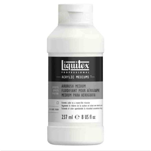 Liquitex Airbrush Medium is specifically formulated to thin acrylic colours for airbrush application. Mixing colours with Airbrush Medium will ensure that the colours do not lose their flexibility, durability and adhesion. Airbrush nozzle size and spraying pressure (PSI) will determine the ratio of Airbrush Medium to paint mixture. Larger nozzles allow for greater amounts of paint in the mixture.