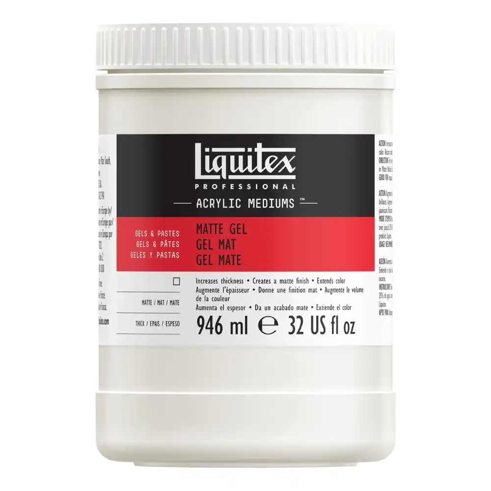 Liquitex Matt Gel in a 946ml jar is a versatile and essential medium for artists. This gel medium provides a non-reflective, velvety finish to artwork. It can be used to extend paint, create texture, and achieve a matte appearance. Liquitex Matt Gel enhances the flow and workability of acrylic paints, allowing for smooth brushwork and even washes.
