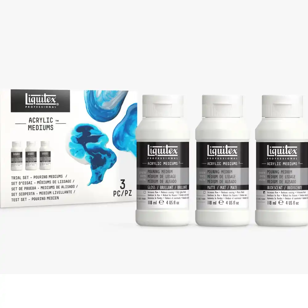 Reeves Pre-Mixed Pouring Acrylic Set 4 x100ml - Metallic. Reeves Pre-Mixed Pouring Acrylic Sets are water-based, ready-to-use pouring paint for creating marble effect artwork. These sets can be used on canvas, paper, cardboard and wood. Everything you need to get started with Acrylic Pouring. These pre-mixed acrylic paints and pouring medium are ready to use - no mixing required