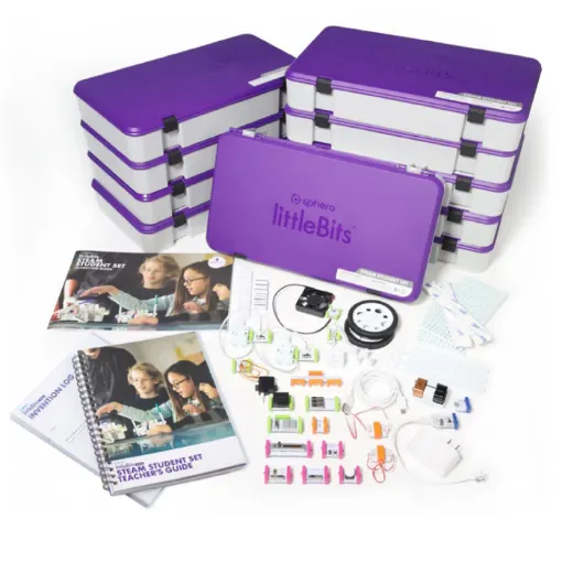Unleash student creativity with the littleBits STEAM Student Set Class Pack! Developed with educators, this electronics kit is designed to teach STEAM principles and encourage exploration, experimentation, and hands-on learning. With 10 littleBits STEAM Student Sets and 20+ hours of standards-aligned curriculum , the STEAM Student Set Class Pack enables students to practice the engineering design process in an approachable and hands-on way. Each kit serves up to 3 students and is best suited for grades 3-8.