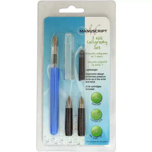 Manuscript Calligraphy Cartridges. The art of calligraphy is about the visual expression of words. Develop your skills and express your ideas through beautiful designs. This package includes 12 calligraphy cartridges for fountain pens in assorted colors. Imported.