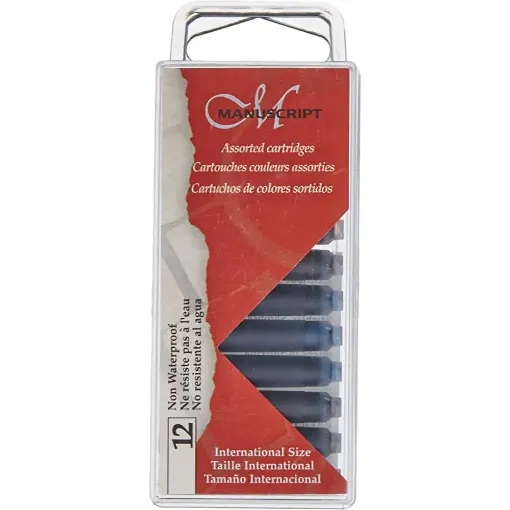 The Manuscript Fountain Pen Ink Cartridges (Pack of 12) is a convenient and reliable solution for refilling your fountain pens. Each pack contains 12 ink cartridges, ensuring a steady supply of high-quality ink for smooth and effortless writing. These cartridges are designed to fit most standard fountain pens, making them versatile and compatible with a wide range of writing instruments.