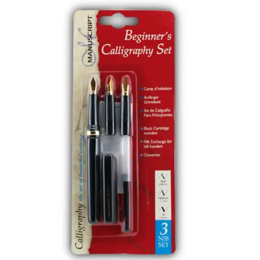 The Creative 3 Nib value set from Manuscript has been designed to aid you in the development of your Calligraphy skills. The set includes three square edge nibs- including one 2B nib- Ideal for beginners starting out in calligraphy.