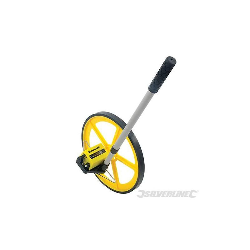 This distance measuring wheel is expertly crafted with an aluminum handle, complemented by a comfortable rubber grip. Its sturdy plastic wheel is both lightweight and robust, capable of measuring distances up to 99,999.9 meters.