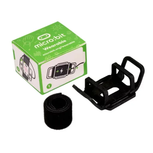 The official micro:bit wearable lets you securely connect your micro:bit to a battery pack using its flexible holder. Featuring an adjustable strap, it can be worn on the wrist, ankle, or attached to other objects for interactive projects on the go.