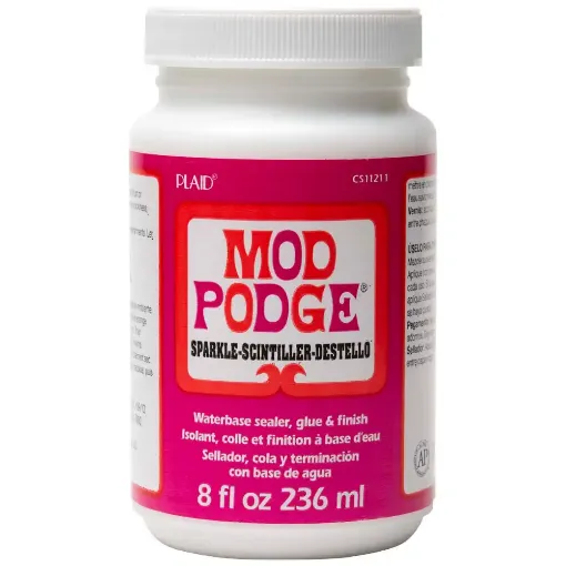 Add a touch of sparkle to your decoupage projects. Waterbase formula dries fast & clear, holds tight, protects and gives a smooth finish. Great for all-around crafts and kid's projects.