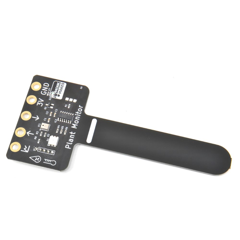 The Prong soil moisture sensor for BBC microbit is a sensor board that can be directly mounted to a BBC micro:bit to monitor the moisture present in the soil. The two conductive tines are placed into the soil. Any water or moisture in the soil will conduct to give an analogue voltage that can be read by the BBC micro:bit.