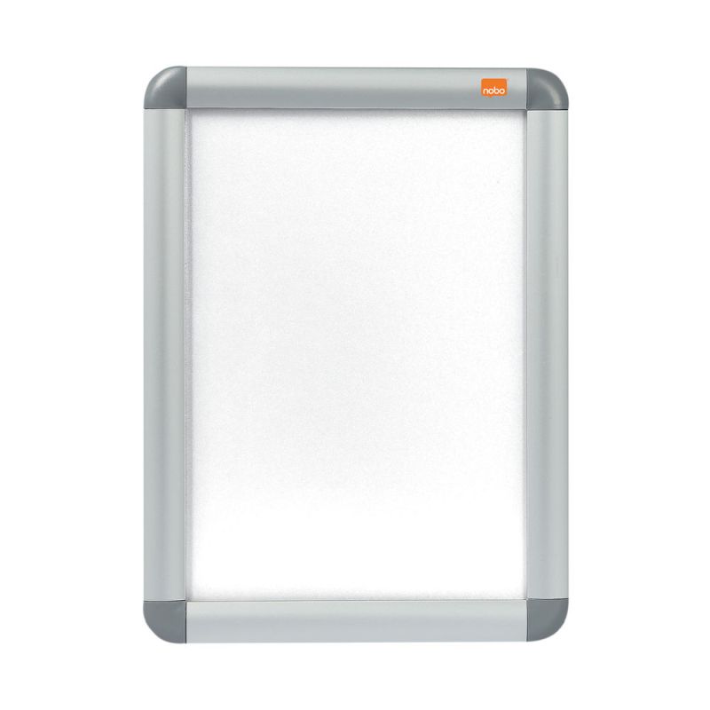 Wall mounted poster frame for the secure display of posters, signs and information. The smart aluminium snap frame trim gives a professional finish and allows quick and easy content change. This stable and secure sign holder has a back panel which attaches firmly to the wall using through corner mounting and the protective anti-glare cover is easy to wipe clean. An ideal solution for the display of temporary or permanent posters and signs. Display area A3.