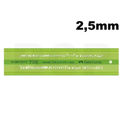 The Faber-Castell Tekagraph Stencil Lettering Guide in 2.5mm is a versatile tool for creating consistent and precise lettering. The 2.5mm size ensures the creation of very small-sized letterforms, ideal for various projects. Made with high-quality materials, the lettering guide is durable and easy to use, helping artists and enthusiasts achieve professional-looking results in their lettering endeavors. . With its comfortable grip and balanced weight, the Faber Tekagraph provides a comfortable and controlled drawing experience. Whether you're an architect, engineer, or artist, this is a reliable tool for intricate details and fine linework.