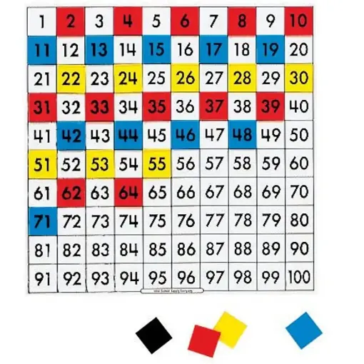 This board measures 8” (20cm) square and features numbers 1 to 100.
