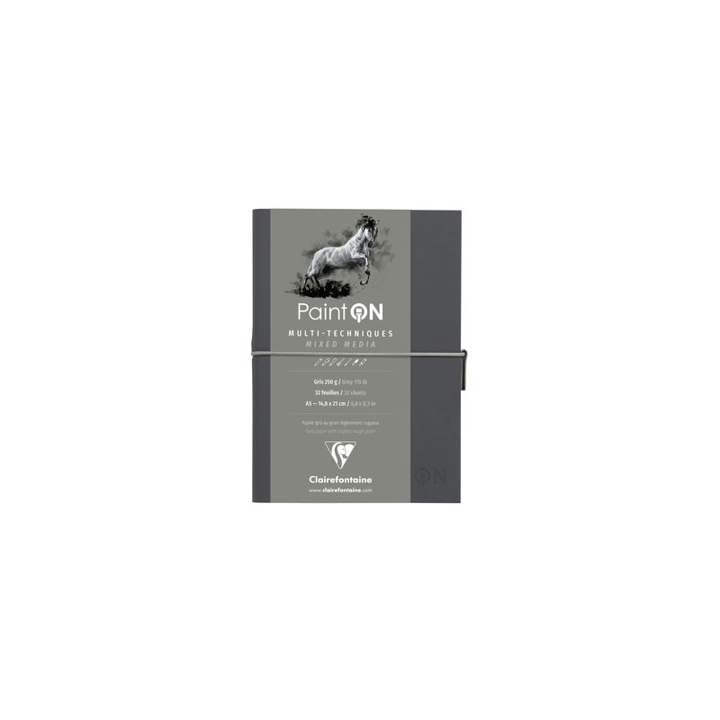 Clairefontaine Paint On Mixed Media Pad - Grey Grey shade paper with slightly rough grain Size: A5 - 14.8 x 21cm Colour: Grey 250g 32 sheets