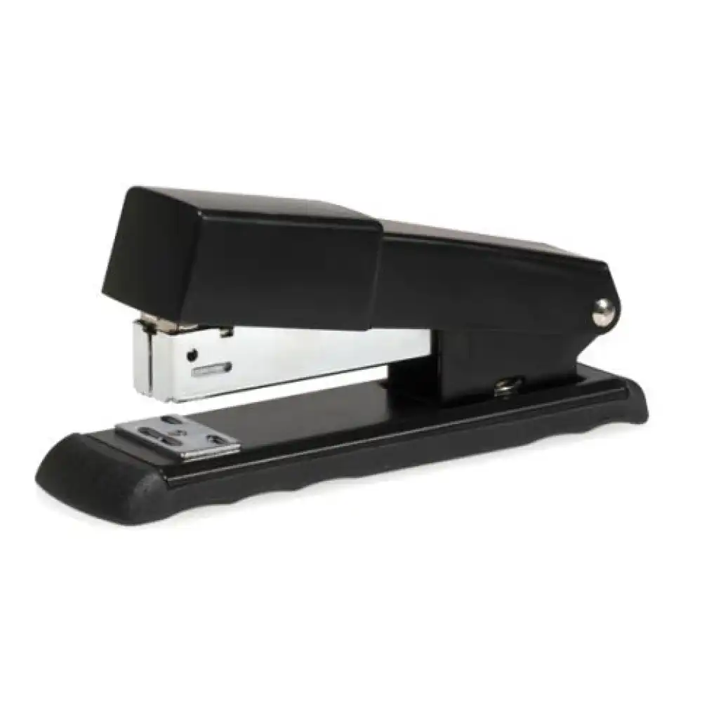 Pavo Black Metal Half-Strip Stapler, a versatile office essential. Compatible with standard 26/6 or 24/6 staples, this stapler ensures seamless document organization. Featuring a spring-loaded channel, it combines convenience and efficiency for all your stapling needs.