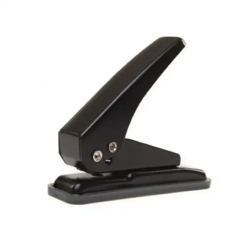 Single hole punch with Metal base and lockable plastic upper. 20 Sheet capacity, 70gsm