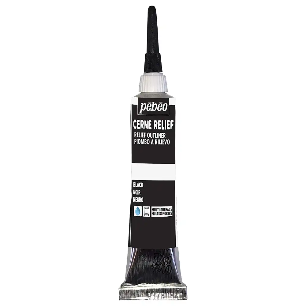 Pebeo Cerne Relief Black (20ml) is a 20ml tube of black relief paint with a glossy finish. It is specially formulated for creating raised outlines, patterns, or designs on various surfaces, such as glass, porcelain, or canvas. This relief paint is easy to apply and dries to a smooth and dimensional texture. With its fine nozzle, precise lines and intricate details can be achieved. Pebeo Cerne Relief Black adds depth and definition to your artwork, crafts, or DIY projects, allowing you to create striking and eye-catching effects.