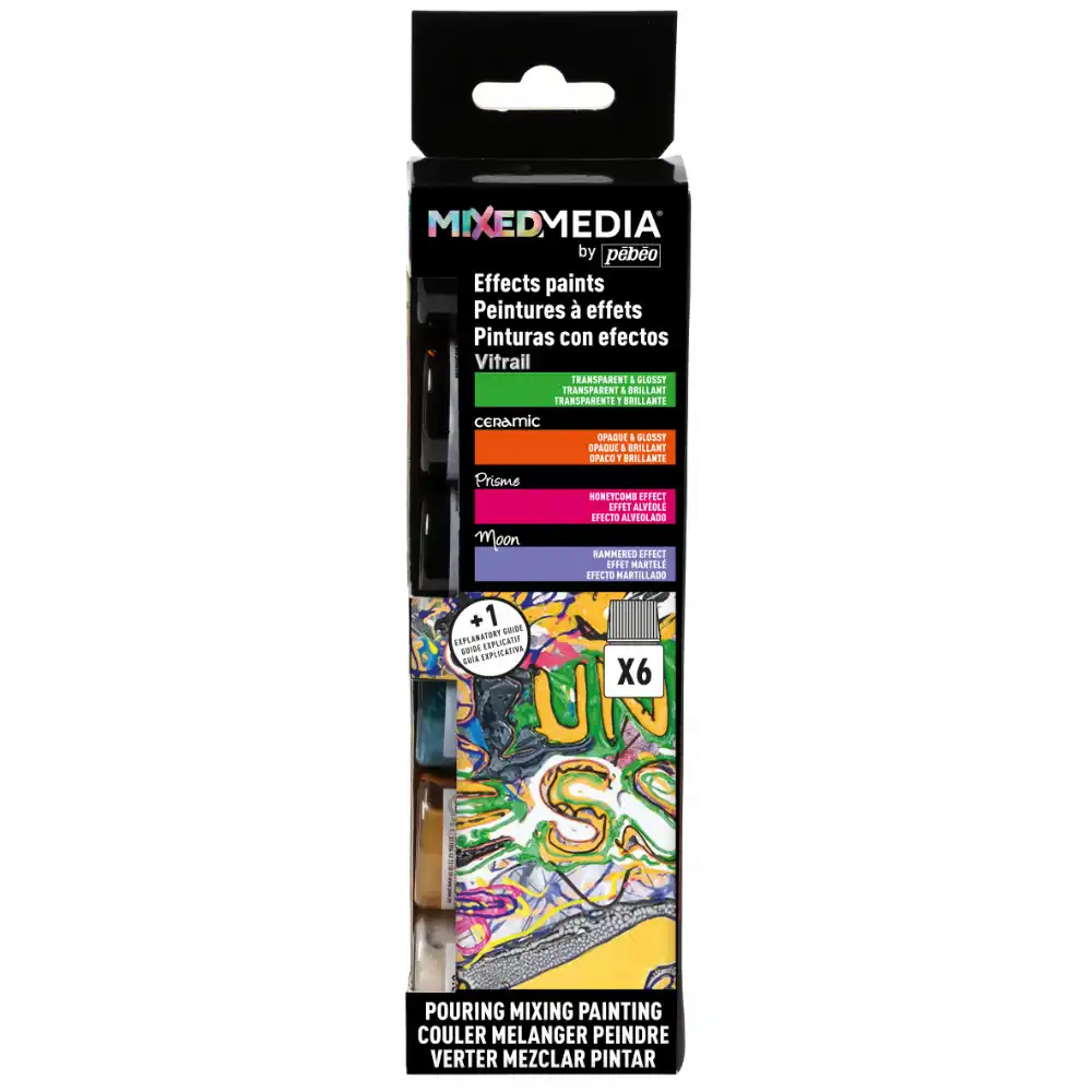 Pebeo Mixed Media Discovery Set 6 x 20ml. This kit is a great mini starter kit with all different types of Pebeo paints to enable you to discover your creative talents