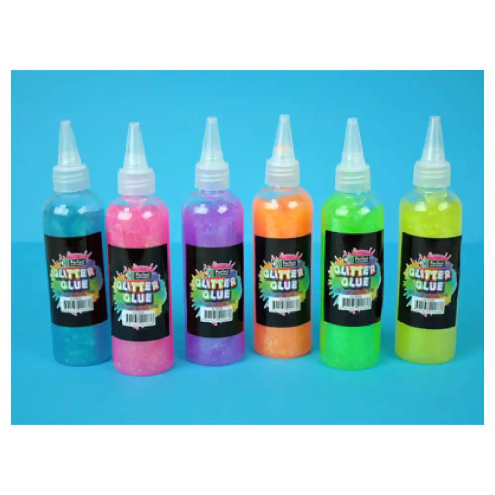 This glitter glue is a type of craft glue that is infused with bright, eye-catching neon pigments and fine glitter particles. When applied, the glue dries to a glossy and sparkling finish that is perfect for adding a pop of colour and dimension to a variety of art and craft projects.