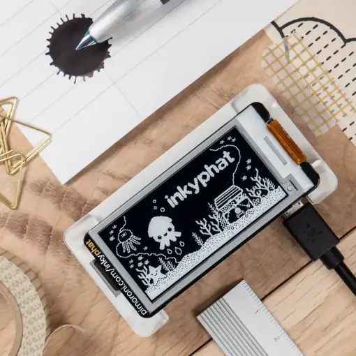 Inky pHAT's beautiful, high contrast display is ideal for displaying simple graphics and crisply-rendered text and, because it's like paper, it's readable in bright sunlight. You could use Inky pHAT as a cute little clock, display tweets on it, the weather, news headlines, sports scores, and more. It's also ideal for graphing data from remote sensors, CPU load or temperature, or stock prices.