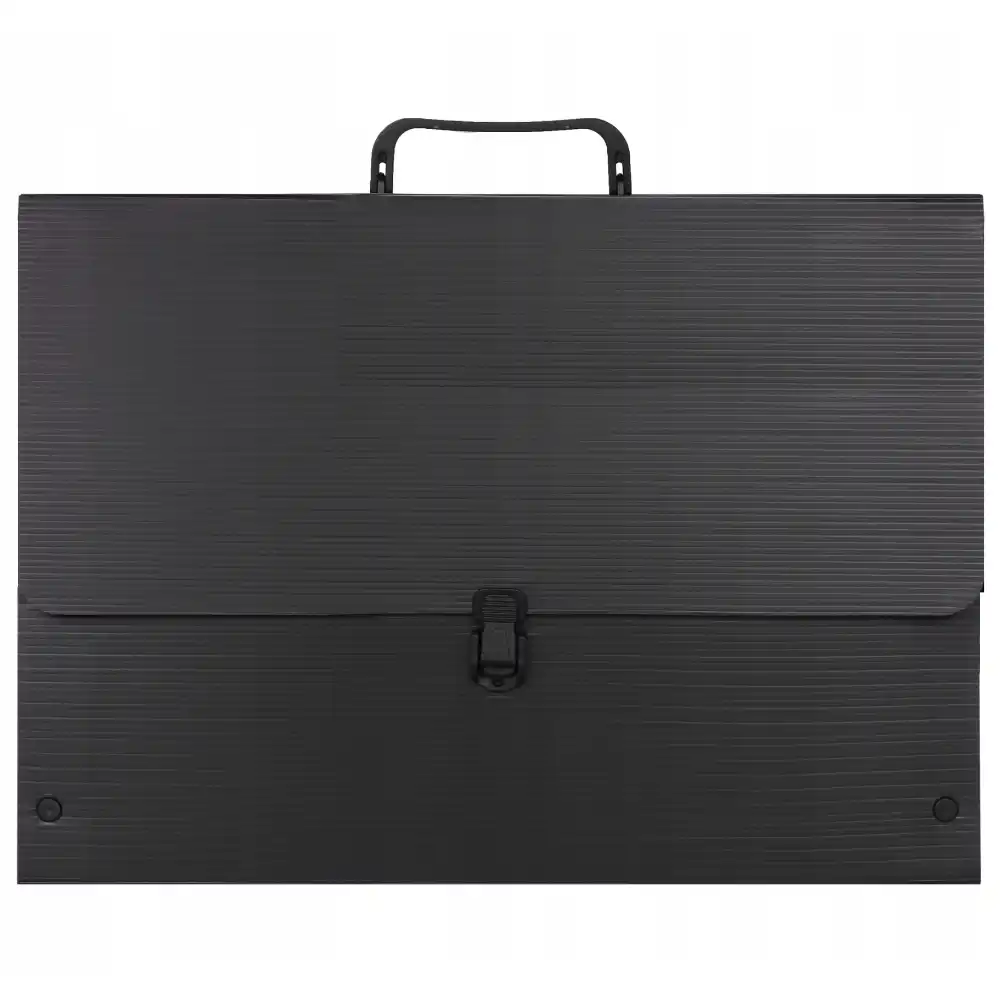 Stylish pencil box opens flat. Zipper serves as a handle when closed