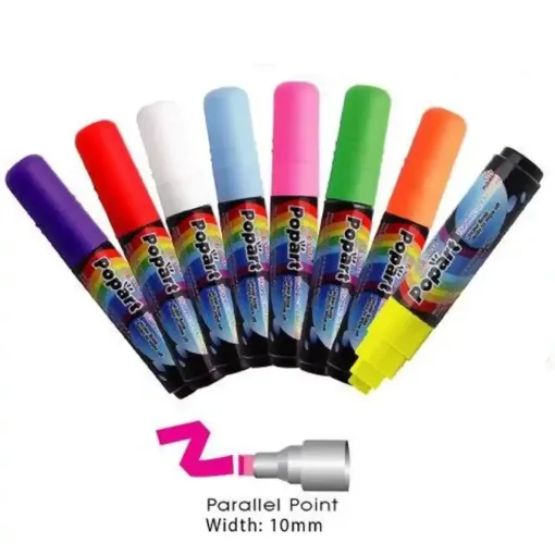 For decorating and writing on glass or windows, and virtually all non-porous surfaces. Wipe it off with wiper or tissue paper. press-tip system ink flow.