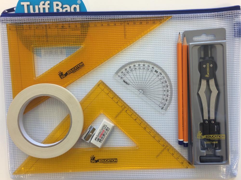 Pouch Bag with 2 Part Compass, Tape & Strong SG Set Square
