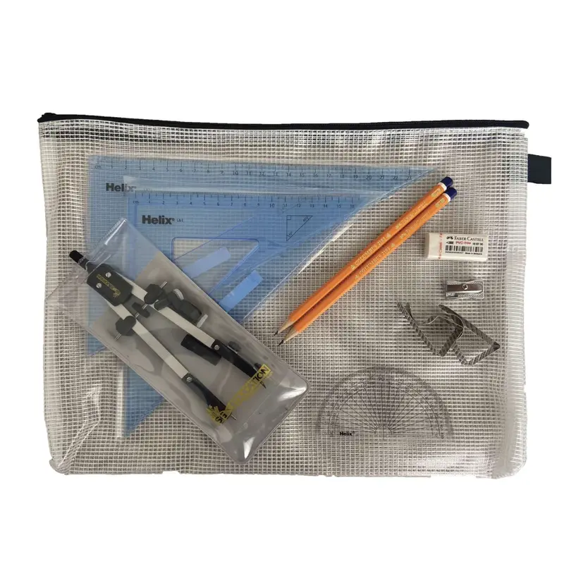 Pouch Bag with Pen Holder Compass, Clips & Helix Set Square